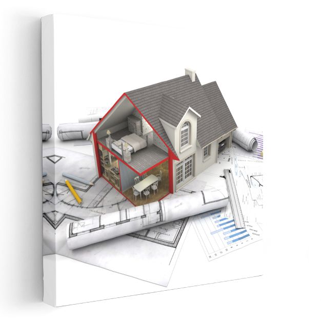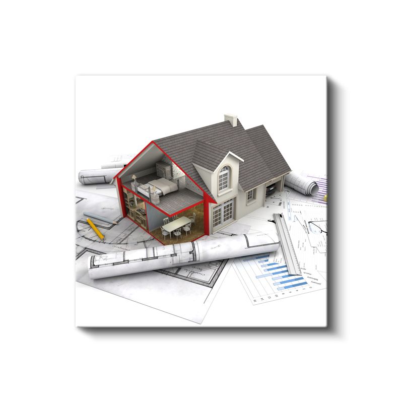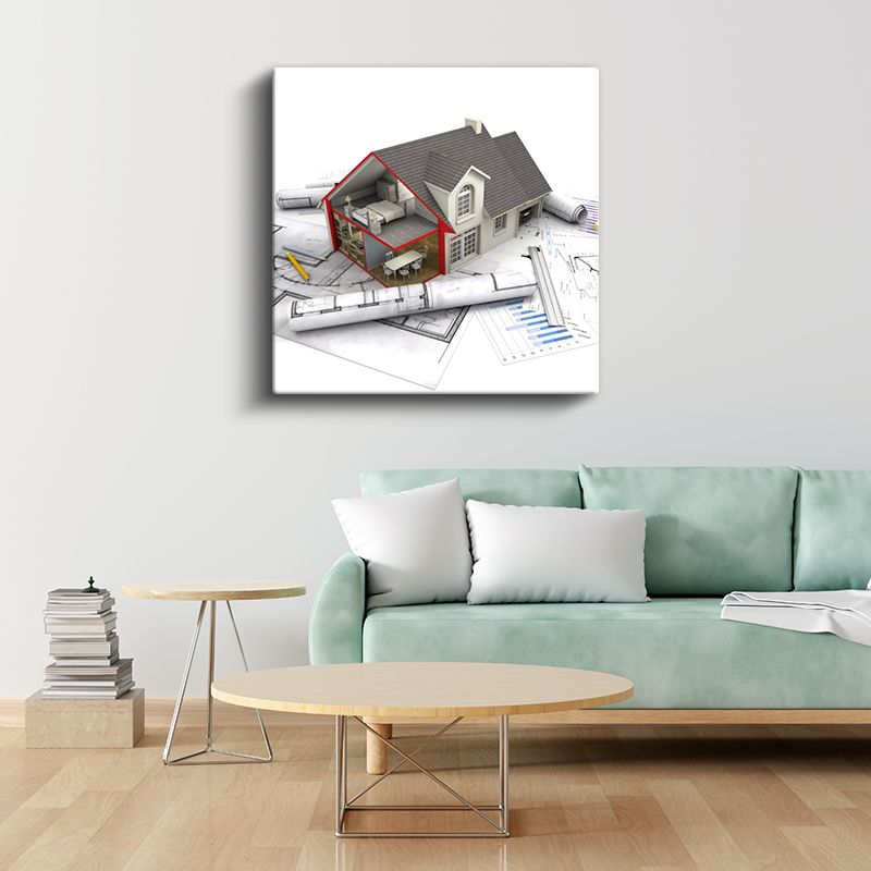 İnşaat Mühendisi - Kesit Görünümlü Ev Modeli Kanvas Tablo