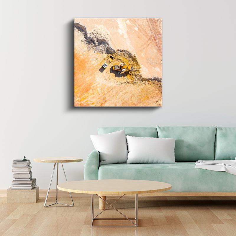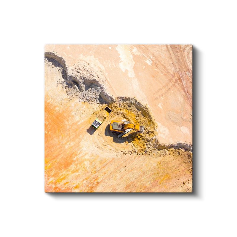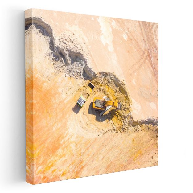 İş Makineleri - Havadan Ekskavatör Görünümü Kanvas Tablo
