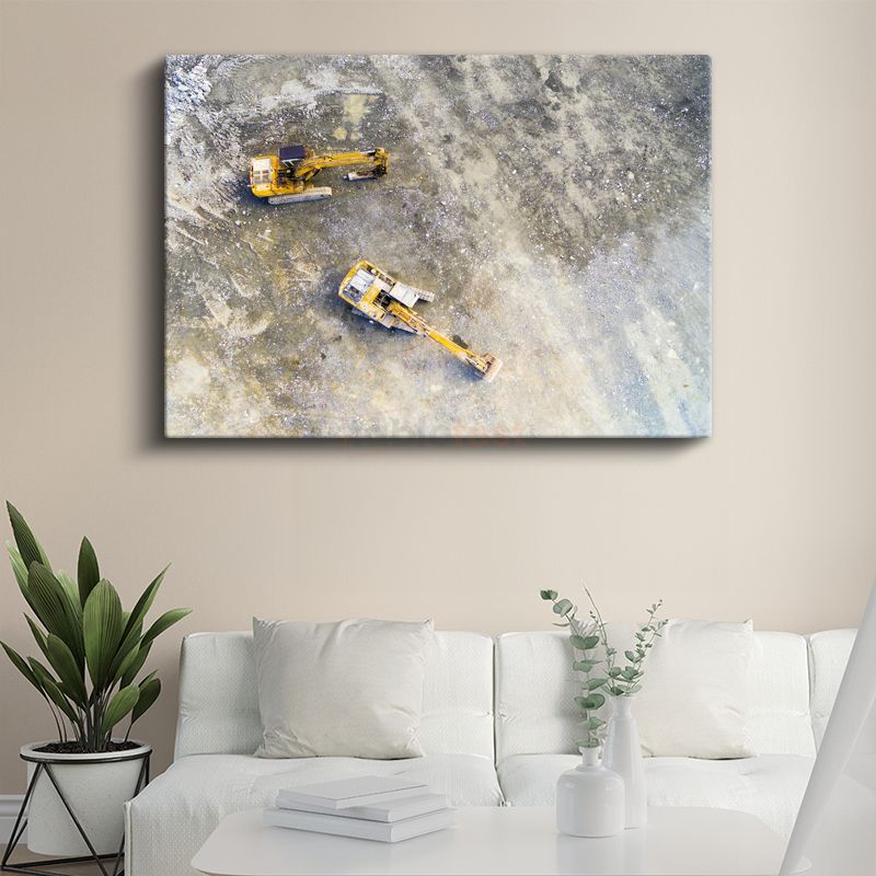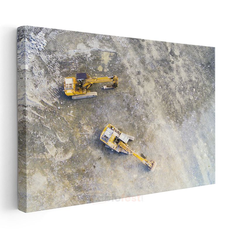 İş Makineleri - Havadan Görünüm İnşaat Ekipmanları Kanvas Tablo