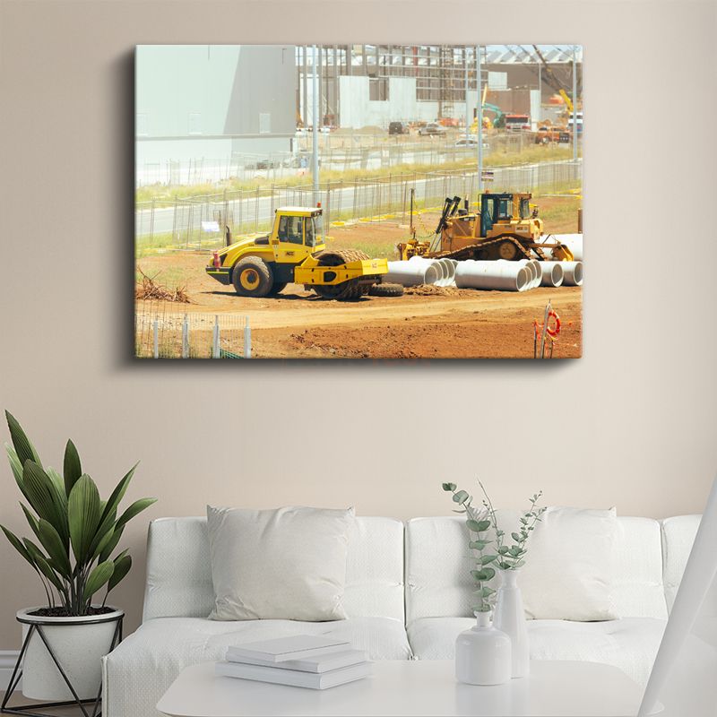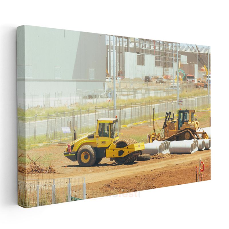 İş Makineleri - İnşaat Sahasında Çalışan Silindirler Kanvas Tablo