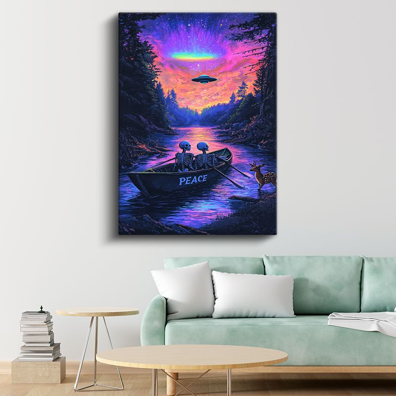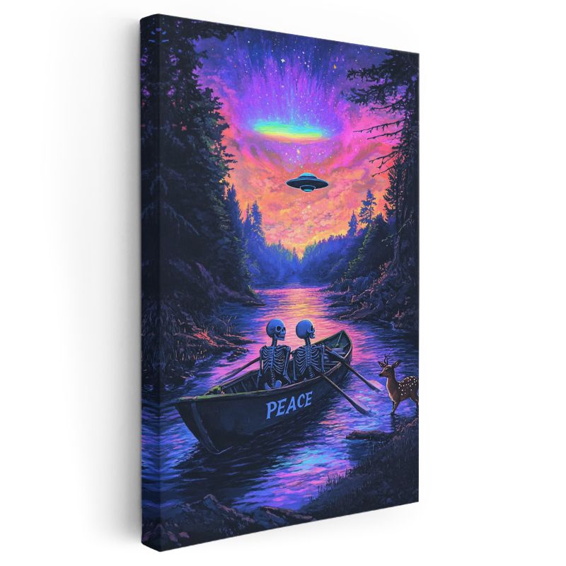 İskeletler ve UFO - Ölümün Huzur Yolculuğu Kanvas Tablo