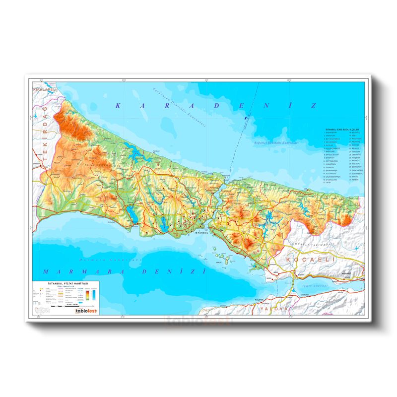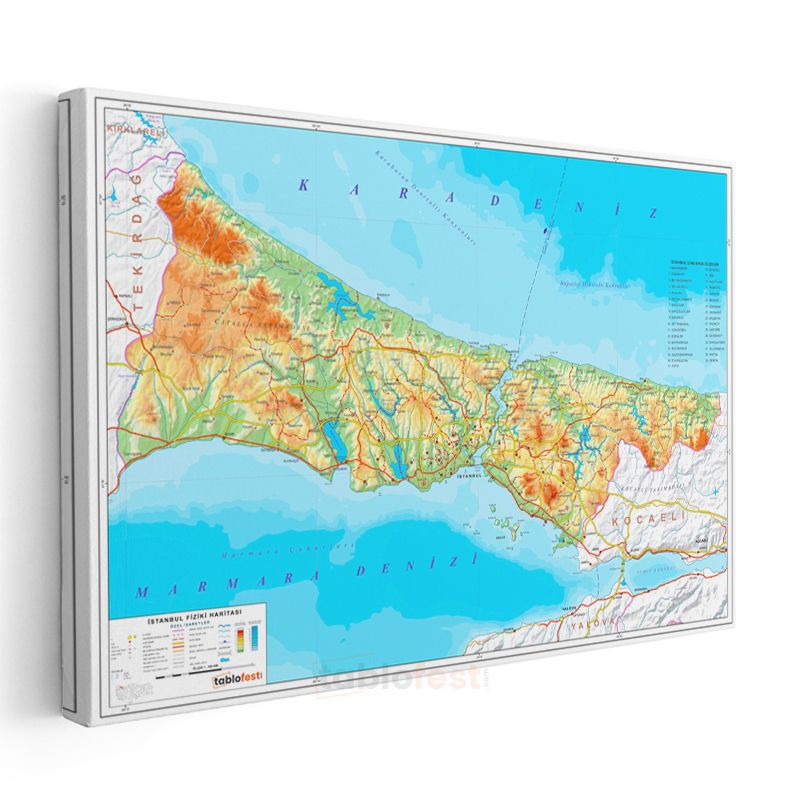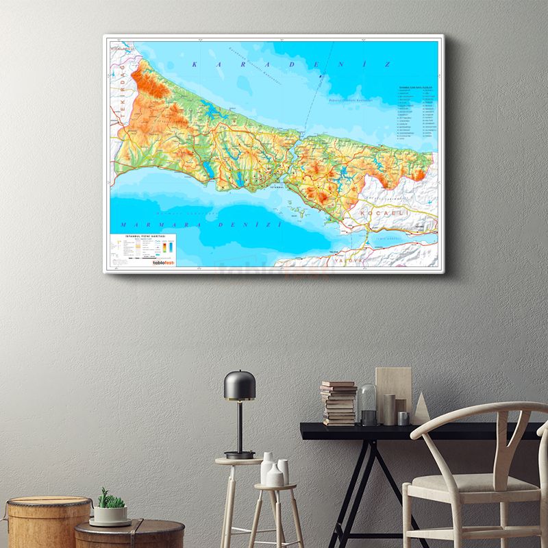 İstanbul - Fiziki Haritası Kanvas Tablo