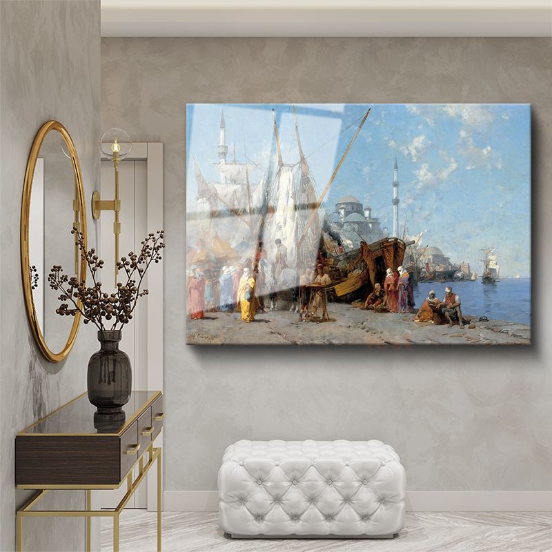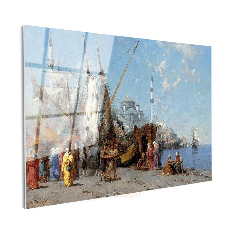İstanbul Limanı - Yelkenliler ve Cami Manzarası Cam Tablo