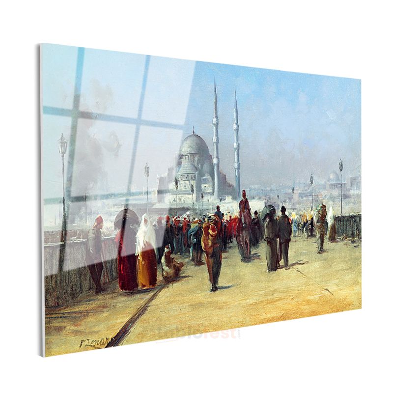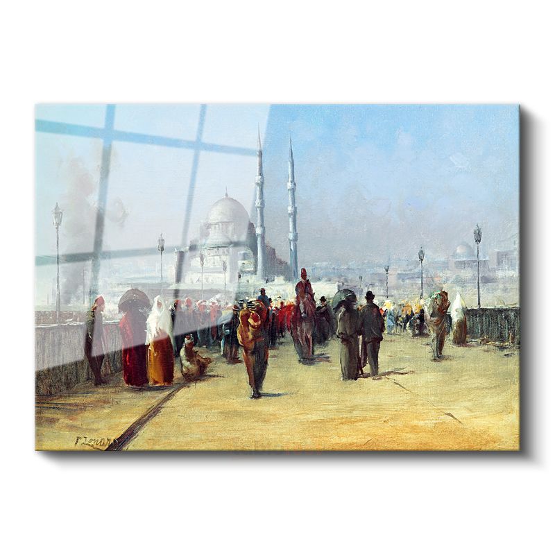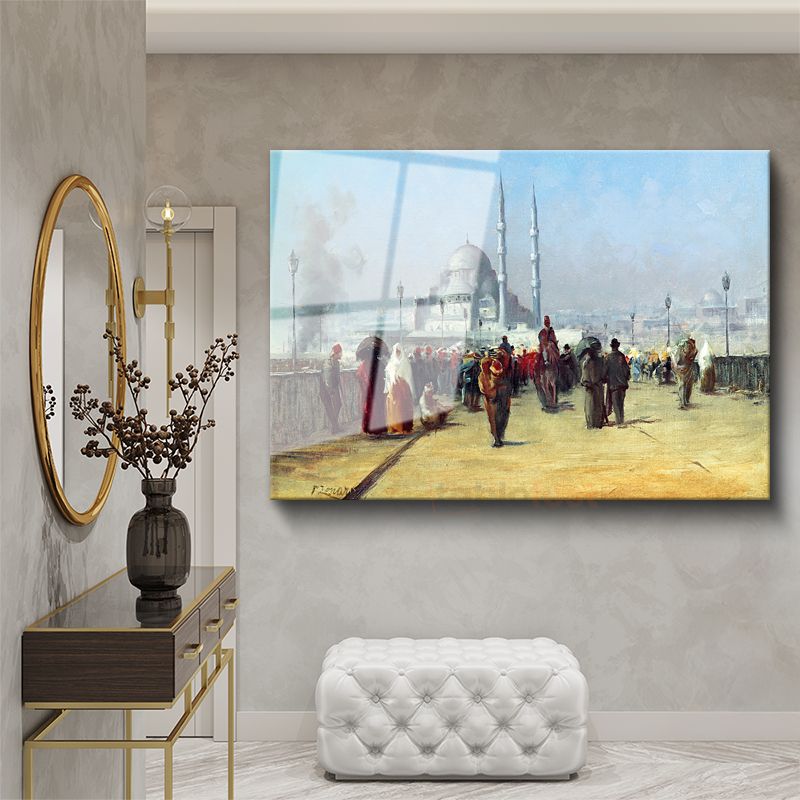 İstanbul Manzarası - Cami Önünde Kalabalık Cam Tablo