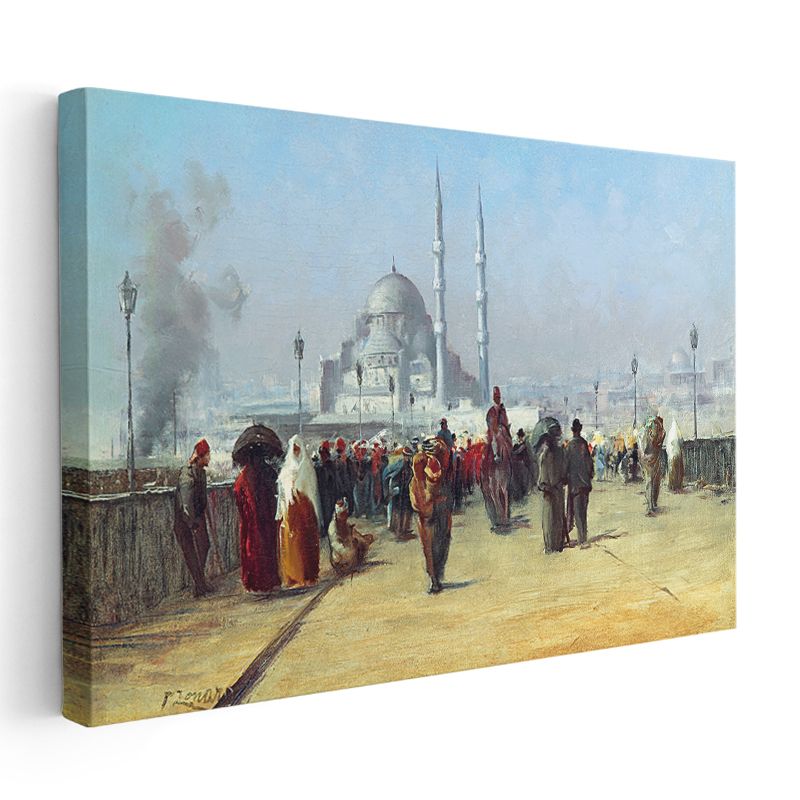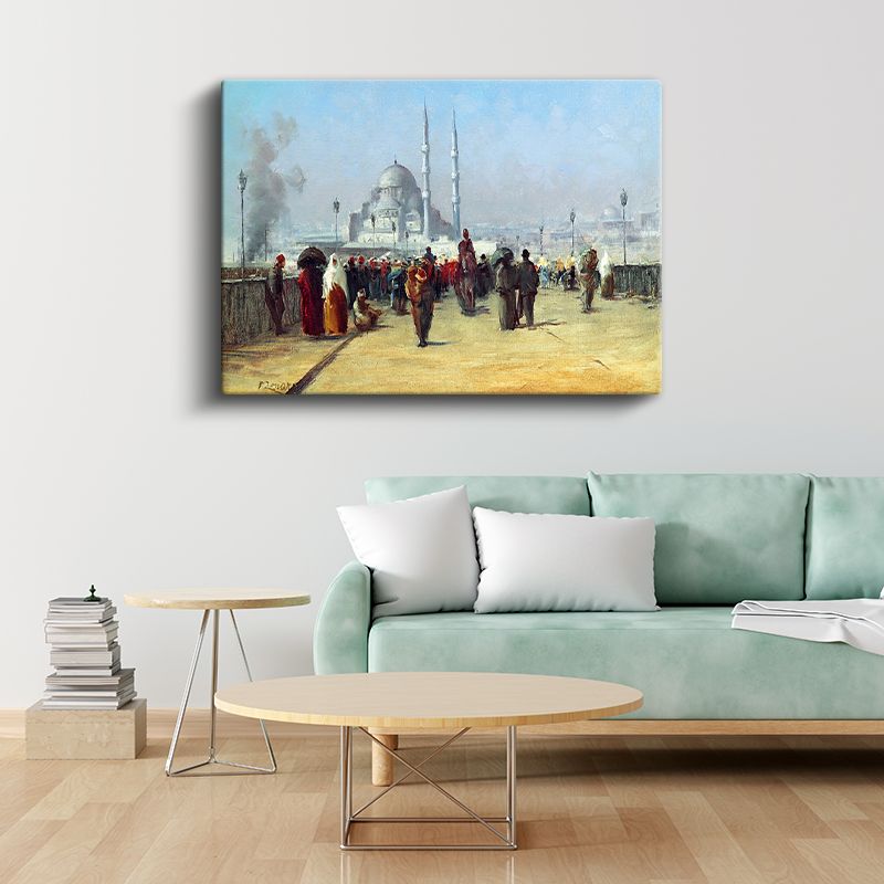 İstanbul Manzarası - Cami Önünde Kalabalık Kanvas Tablo