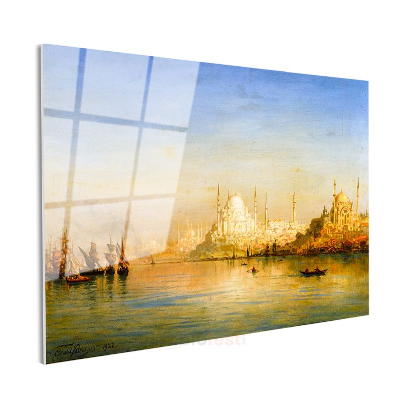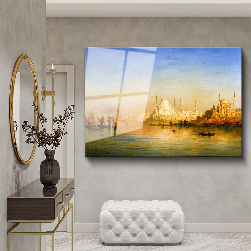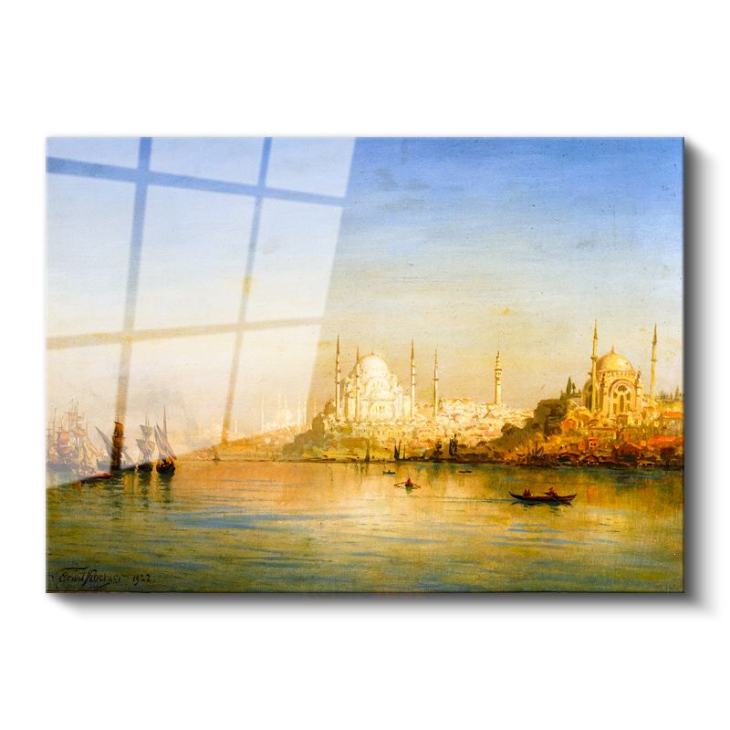 İstanbul Silueti - Altın Boynuz ve Cami Manzarası Cam Tablo