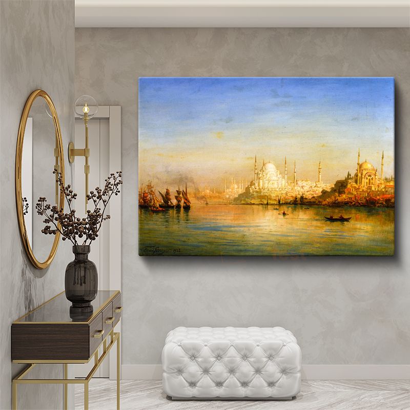 İstanbul Silueti - Altın Boynuz ve Cami Manzarası Kanvas Tablo