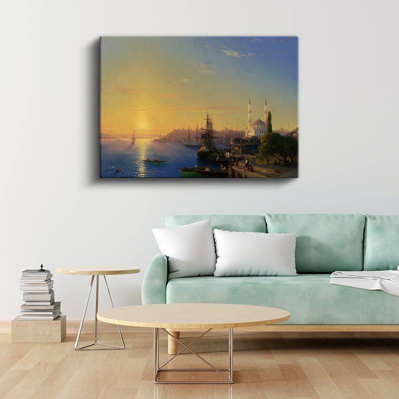 İstanbul Silueti - Gün Batımında Boğaz Manzarası Kanvas Tablo
