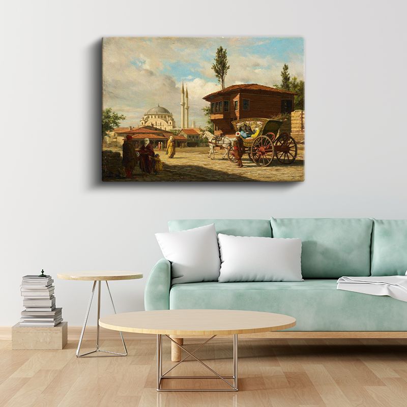 İstanbul Sokakları - Fayton ve Cami Manzarası Kanvas Tablo