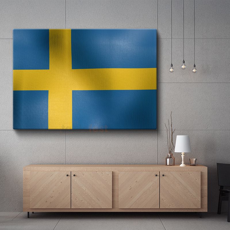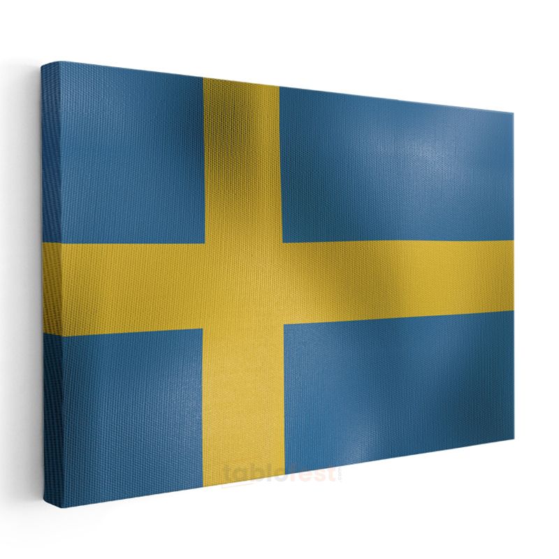 İsveç Bayrağı - Dalgalı Görünüm Kanvas Tablo