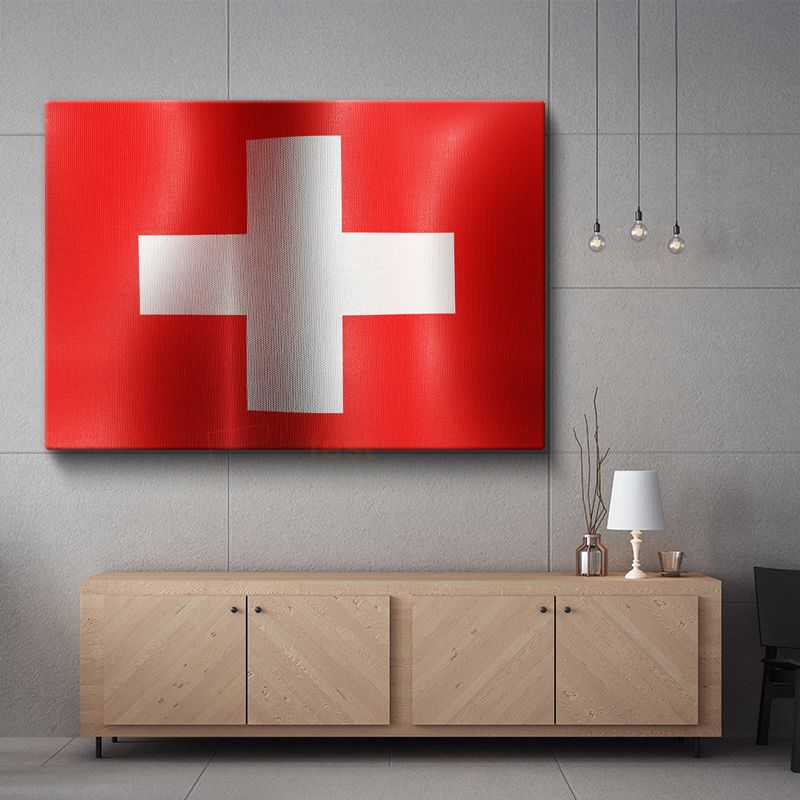 İsviçre Bayrağı - Dalgalı Görünüm Kanvas Tablo
