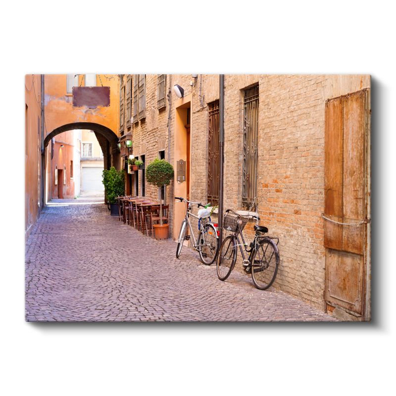 İtalyan Sokağı - Bisikletli Tuğla Kemerler Kanvas Tablo