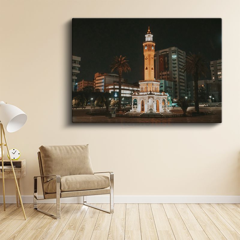 İzmir Saat Kulesi - Gece Işıkları Kanvas Tablo