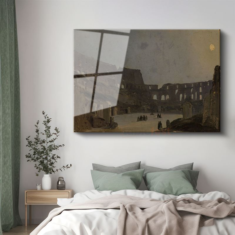 Ippolito Caffi - Colosseum Gece Görünümü Cam Tablo