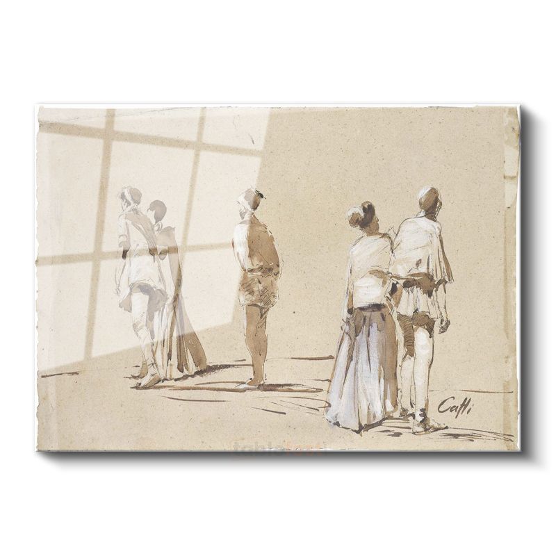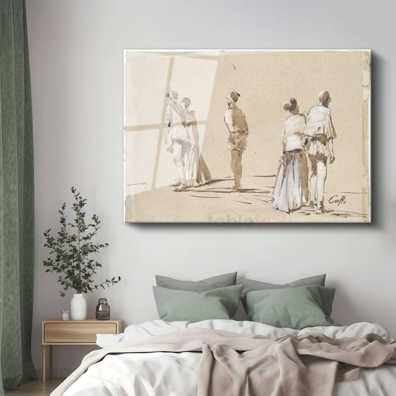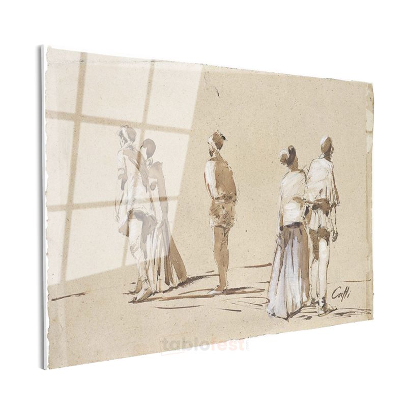 Ippolito Caffi - Figür Eskizleri Cam Tablo