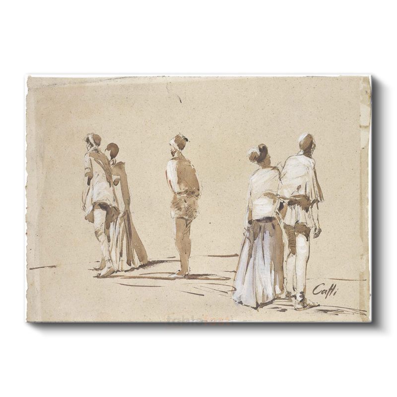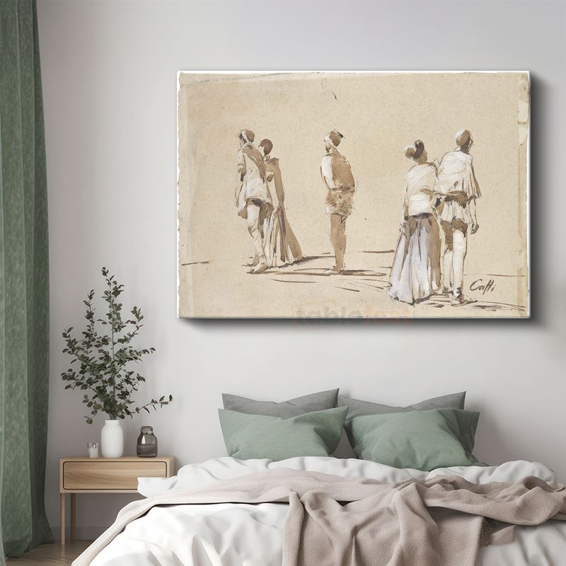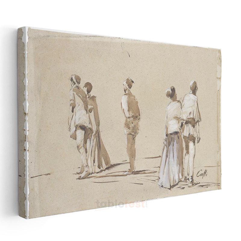 Ippolito Caffi - Figür Eskizleri Kanvas Tablo