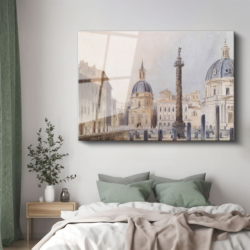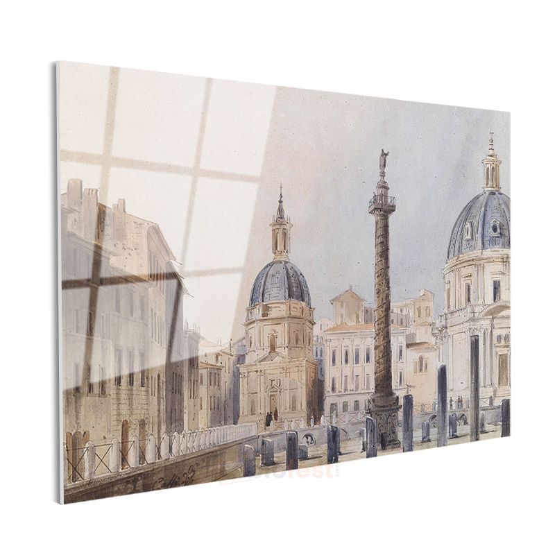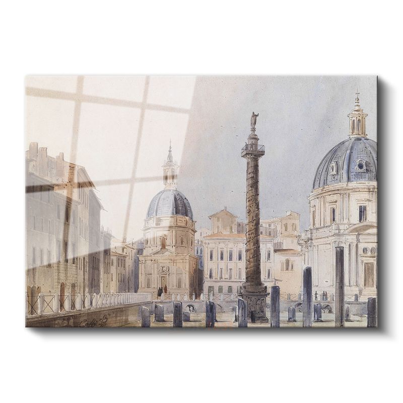 Ippolito Caffi - Roma Kilisesi Manzarası Cam Tablo