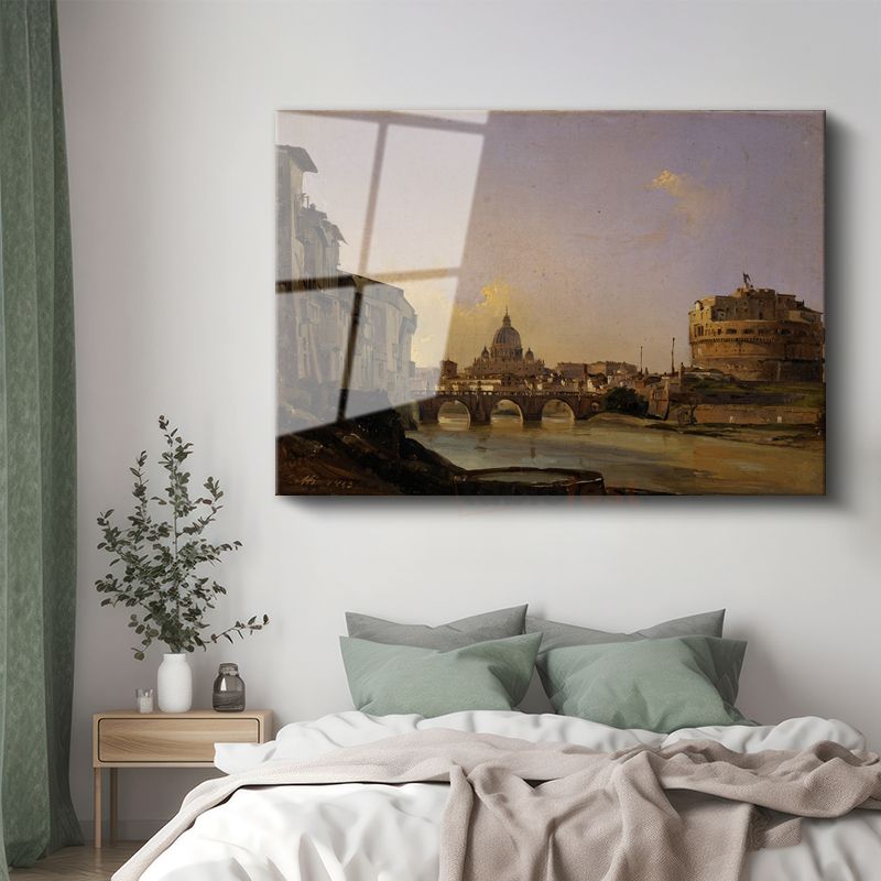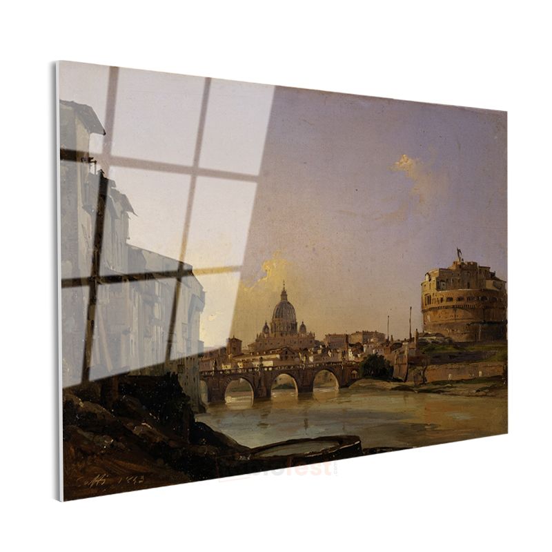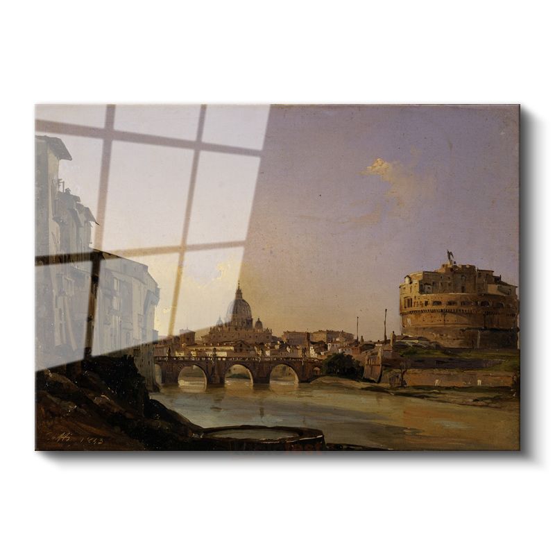Ippolito Caffi - Tiber Nehri ve Vatikan Manzarası Cam Tablo