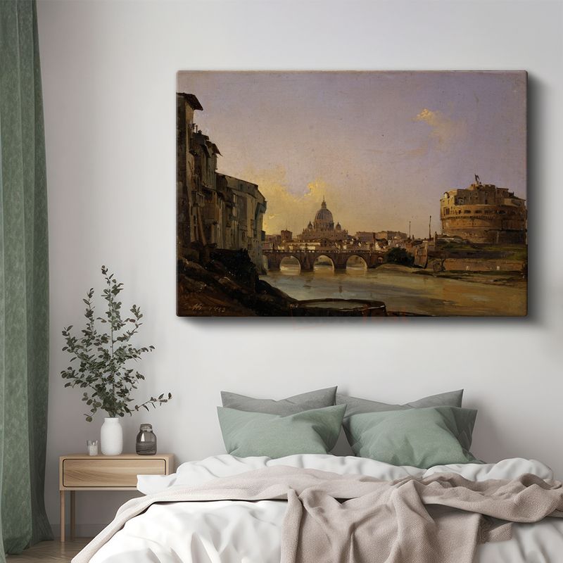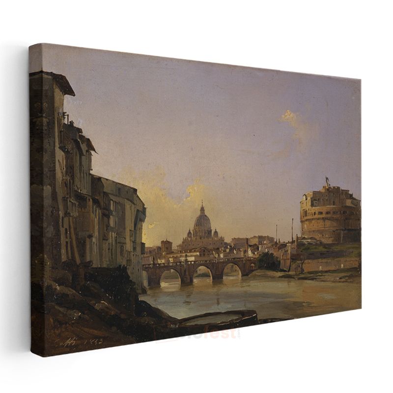 Ippolito Caffi - Tiber Nehri ve Vatikan Manzarası Kanvas Tablo
