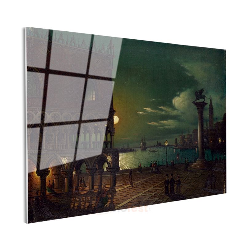 Ippolito Caffi - Venedik San Marco Meydanı Gece Manzarası Cam Tablo