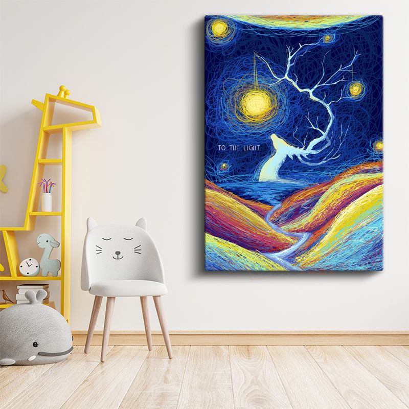 Işığa Doğru - Büyülü Ağaç ve Yıldızlar Kanvas Tablo