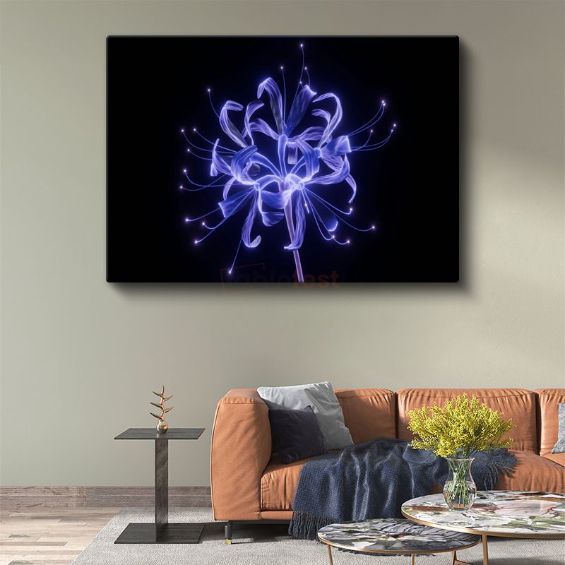 Işık Çiçeği - Mavi Neon Işıklı Soyut Kanvas Tablo