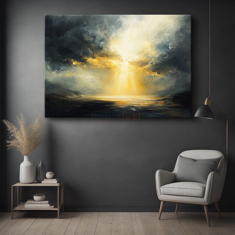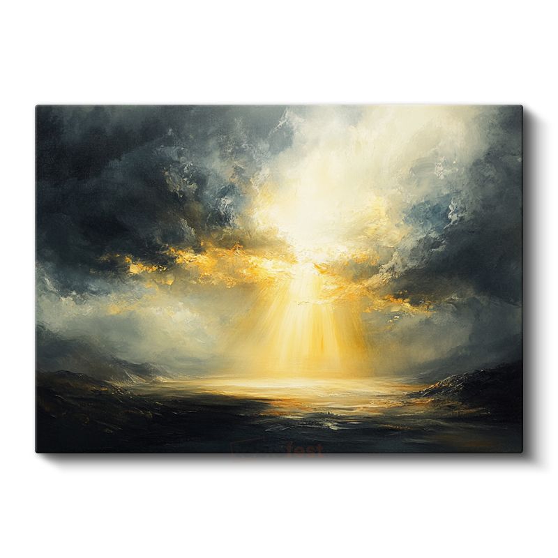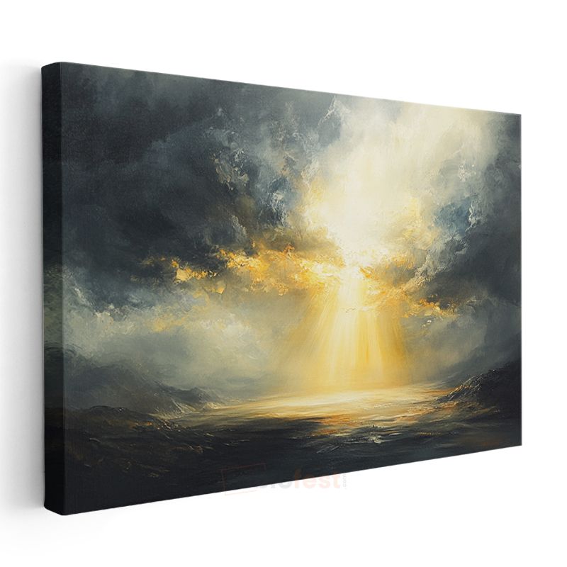 Işık Huzmesi - Bulutlar Arasından Süzülen Altın Işıltı Kanvas Tablo