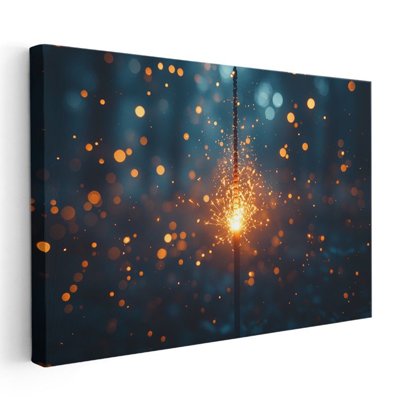Işık Patlaması - Gece Gökyüzünde Parıltı Kanvas Tablo