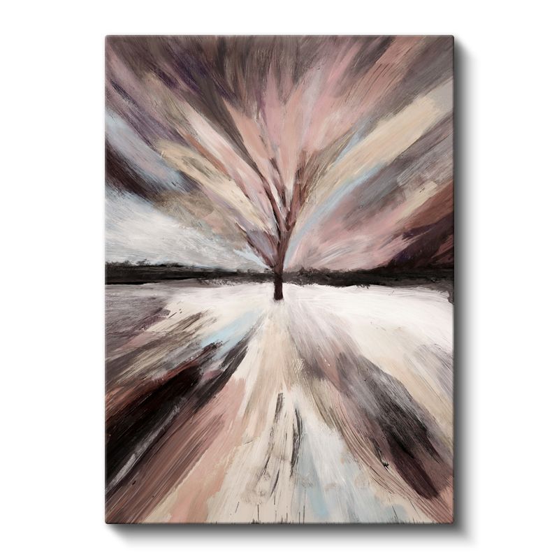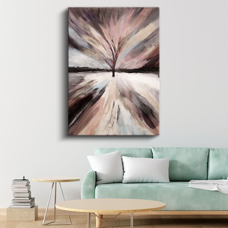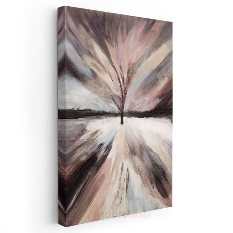 Işık Patlaması - Pastel Tonlarda Soyut Ağaç Silüeti Kanvas Tablo