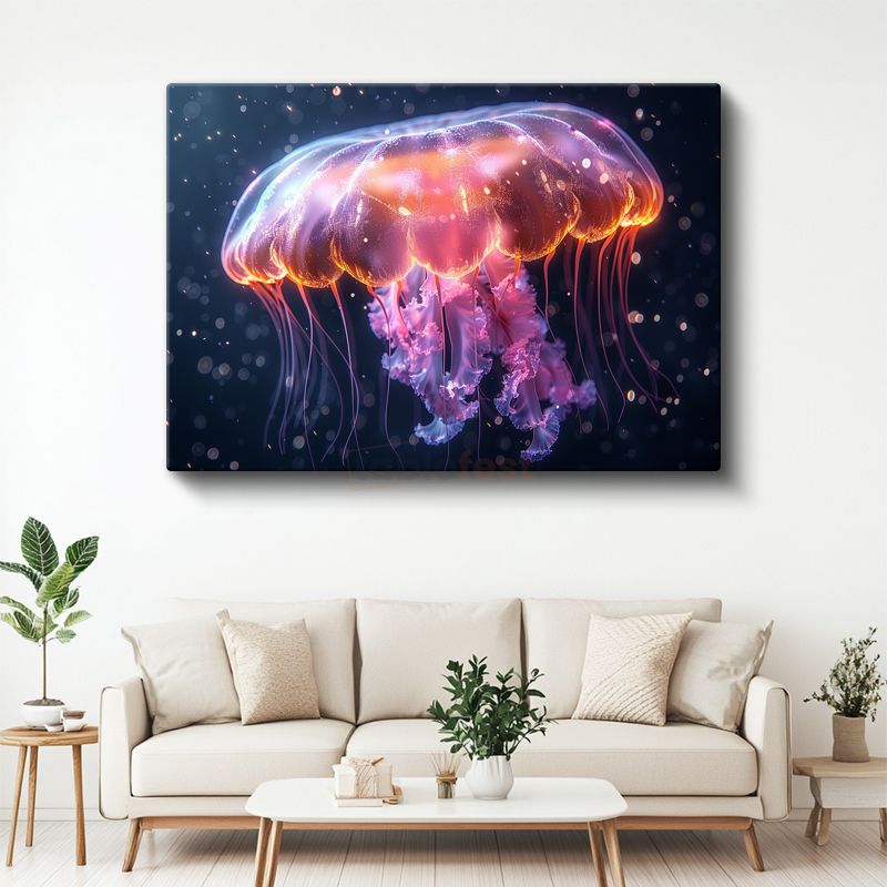 Işıklı Denizanası - Mor Pembe Derinliklerin Büyüsü Kanvas Tablo