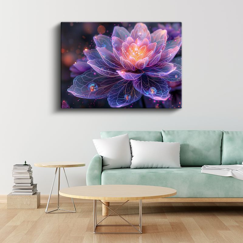Işıklı Lotus - Mor Tonlarda Fantastik Çiçek İllüstrasyonu Kanvas Tablo