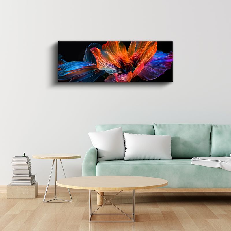 Işıltılı Çiçek - Neon Renkli Dijital Sanat Eseri Çiçek Tasarımı Kanvas Tablo