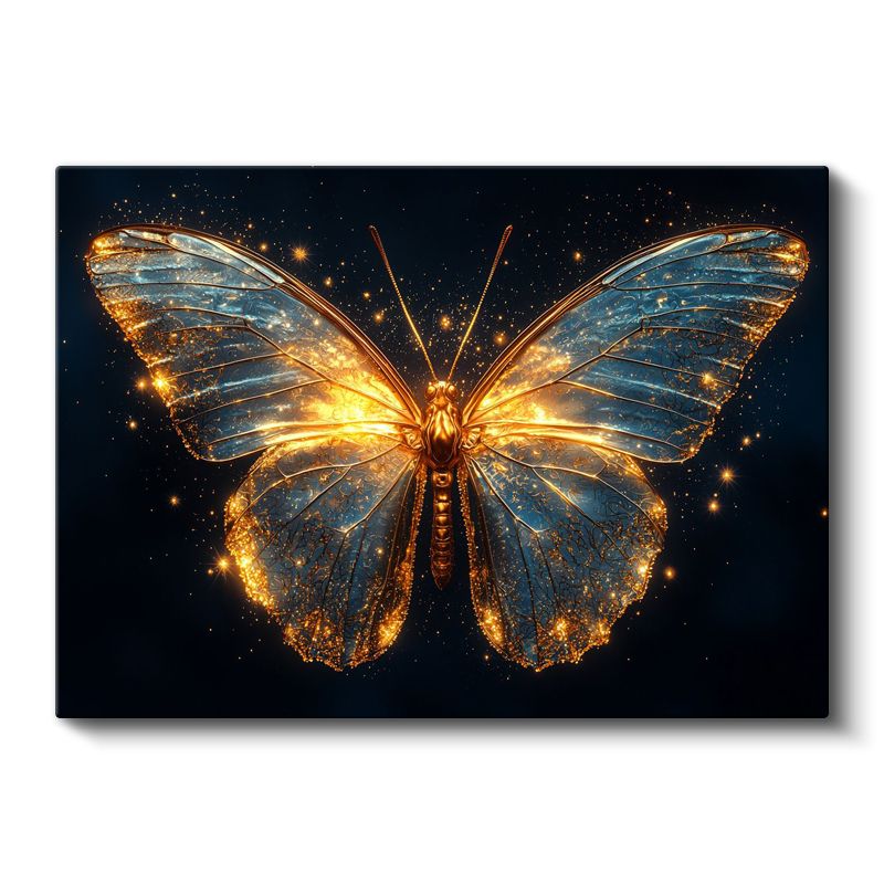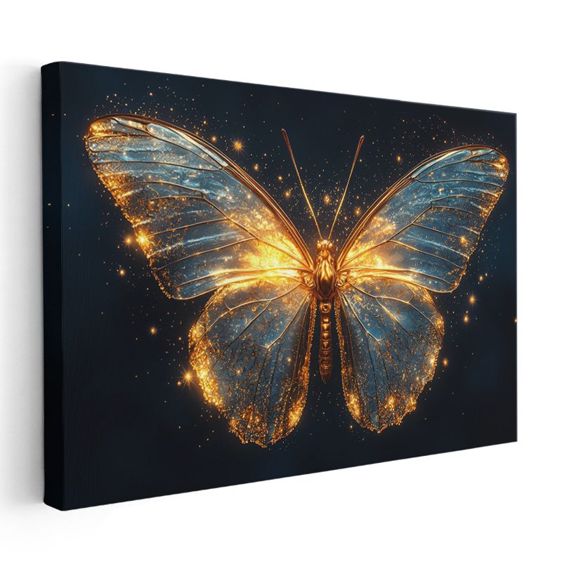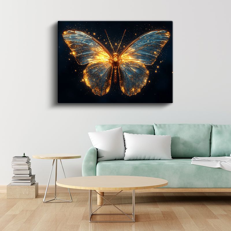 Işıltılı Kelebek - Altın Mavi Kanatların Dansı Kanvas Tablo