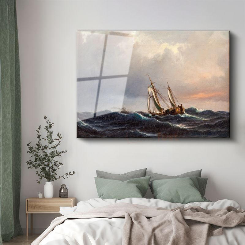 Ivan Aivazovsky - Fırtınalı Denizde Yelkenli Cam Tablo