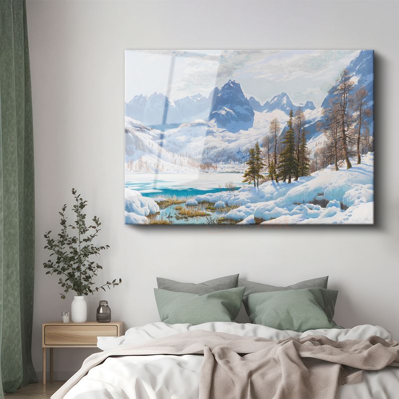 Ivan Fedorovich Choultse - Alp Dağları Kış Manzarası Cam Tablo