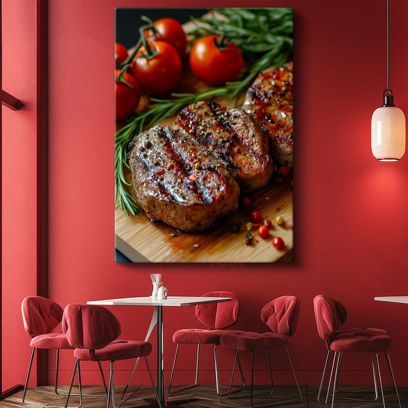 Izgara Biftek - Aromatik Baharatlar Kanvas Tablo