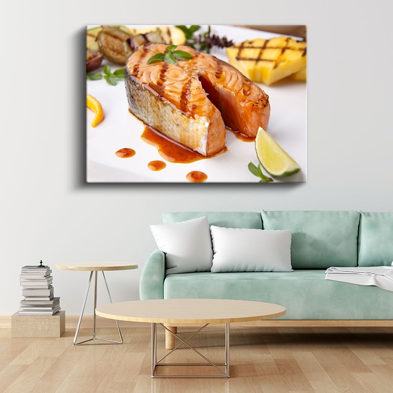 Izgara Somon - Özel Sos ve Ananas Eşliğinde Kanvas Tablo