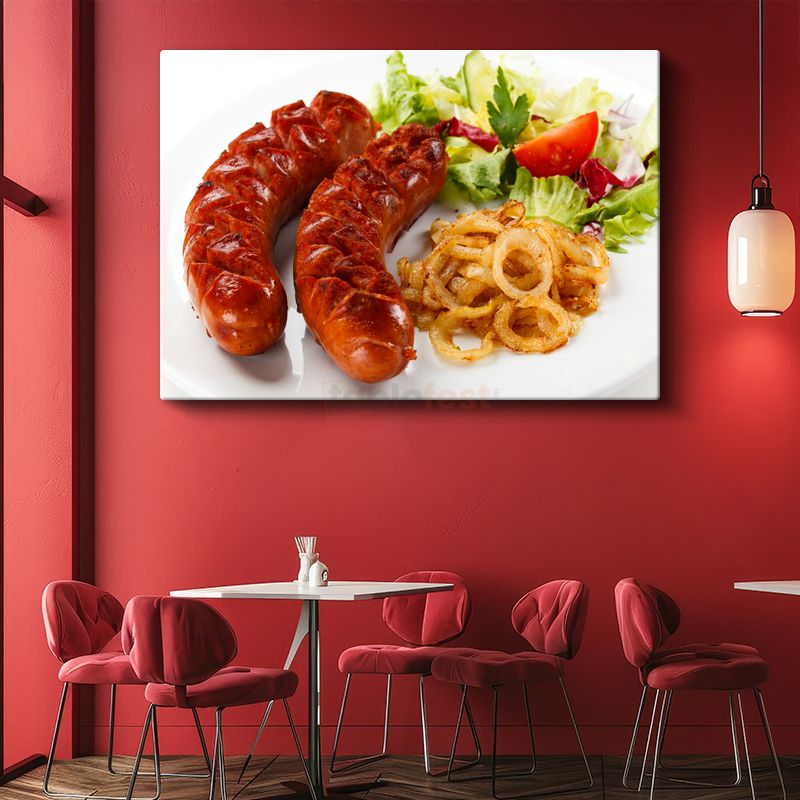 Izgara Sosis - Karamelize Soğan ve Taze Salata İle Kanvas Tablo