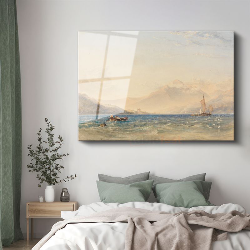 J.M.W. Turner - Dağlık Göl Manzarası Cam Tablo