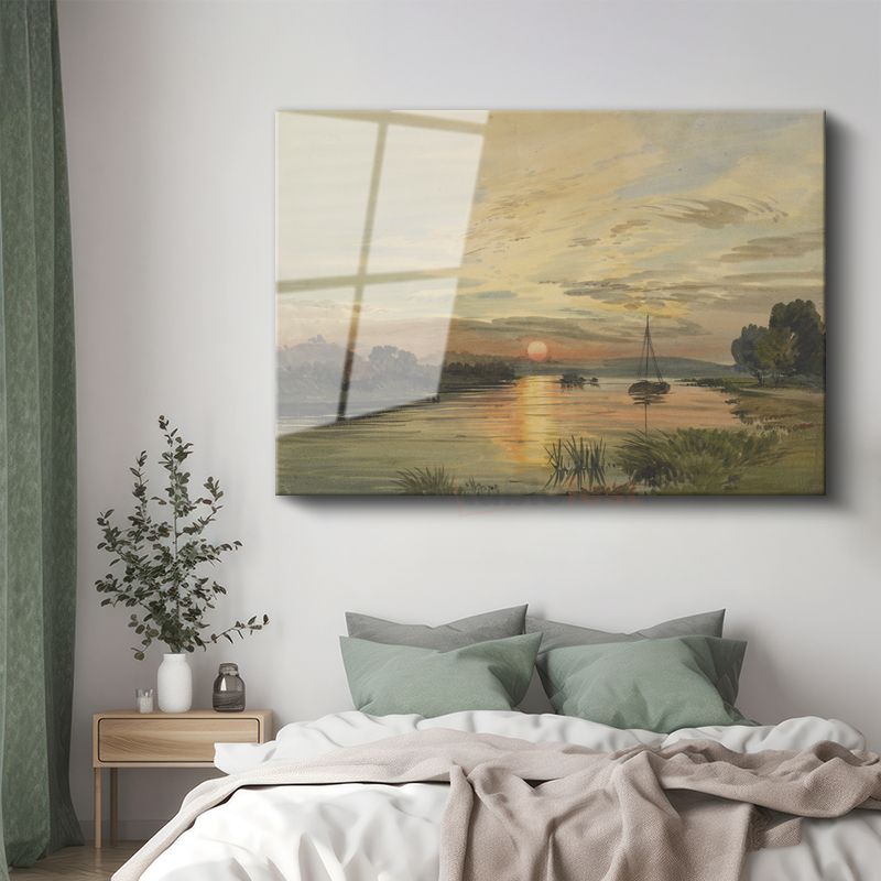 J.M.W. Turner - Gün Batımında Nehir Manzarası Cam Tablo