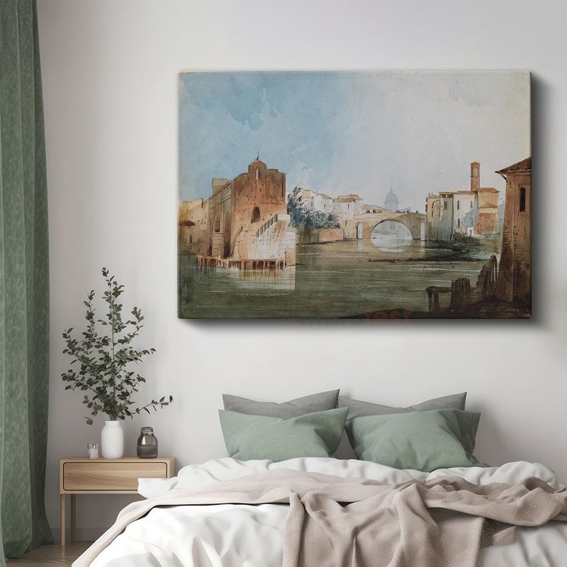 J.M.W. Turner - İtalya Nehir ve Köprü Manzarası Kanvas Tablo