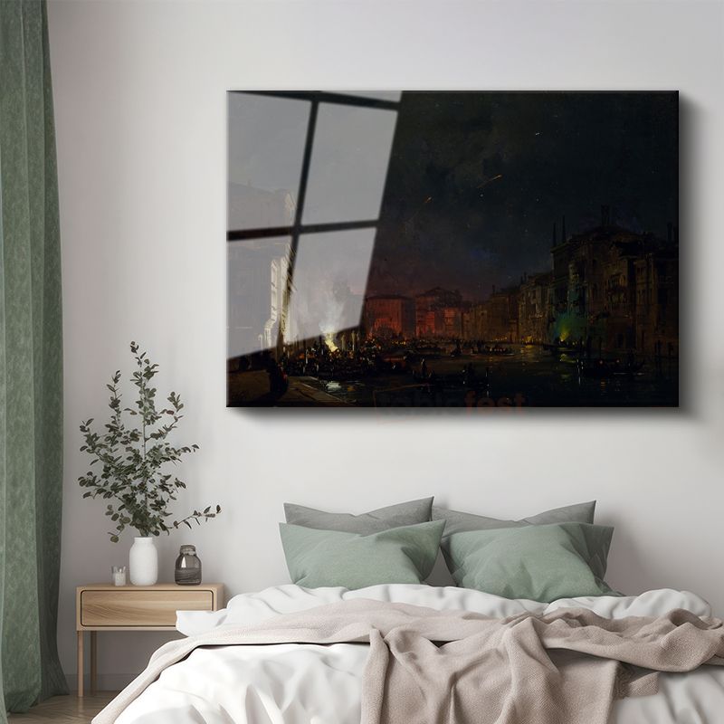 J.M.W. Turner - Venedik Gece Manzarası Cam Tablo