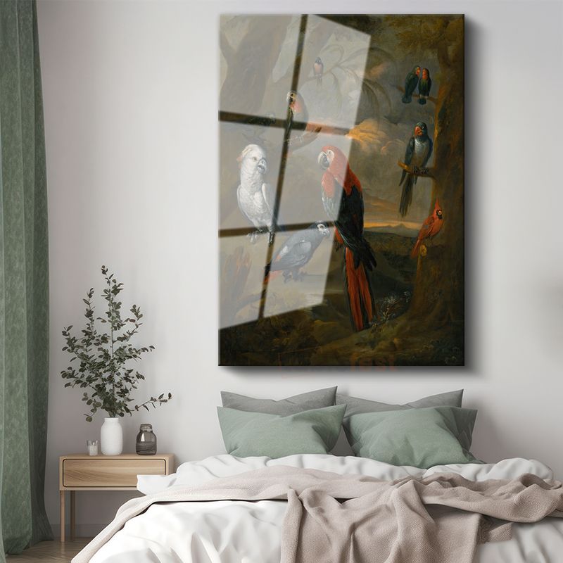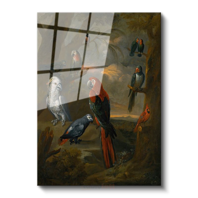 Jakob Bogdani - Egzotik Kuşlar Cam Tablo