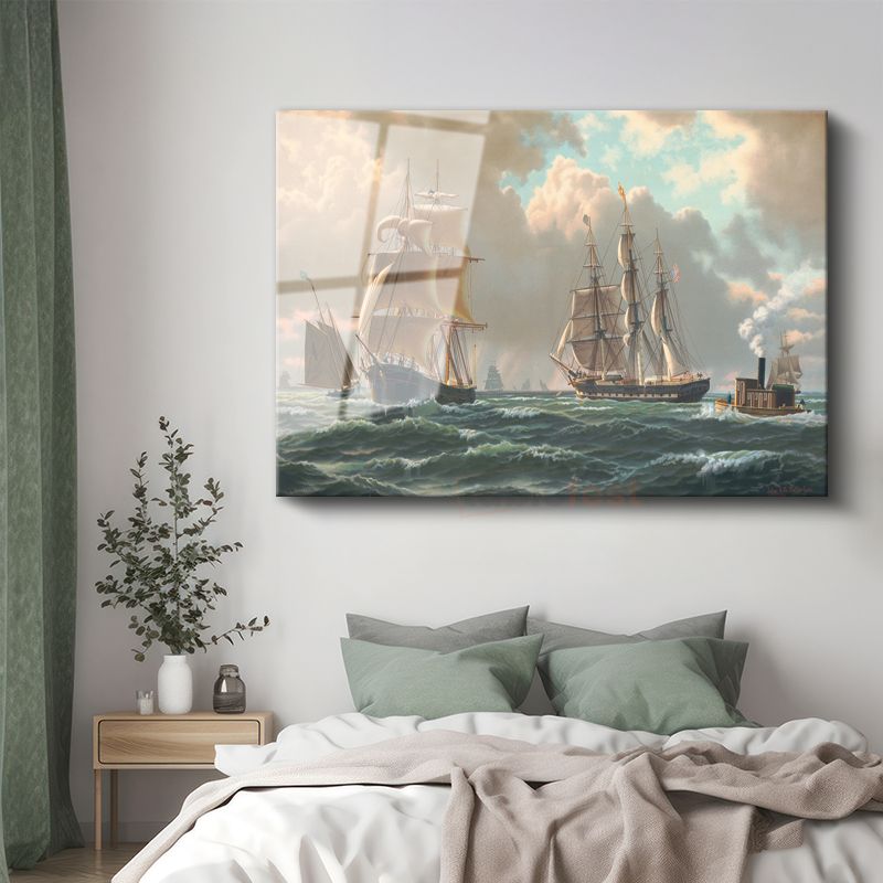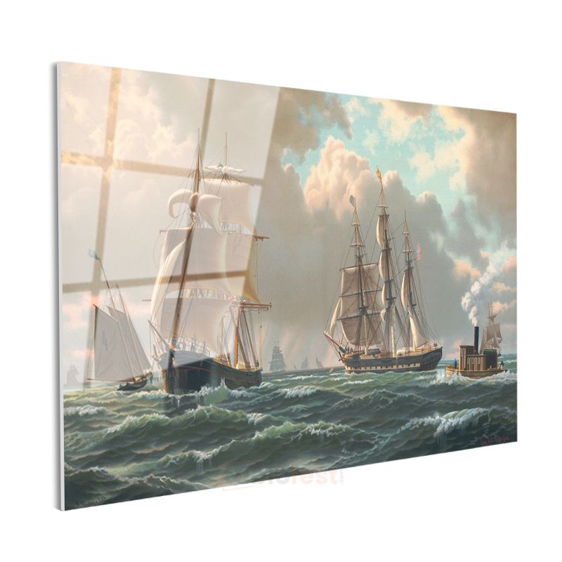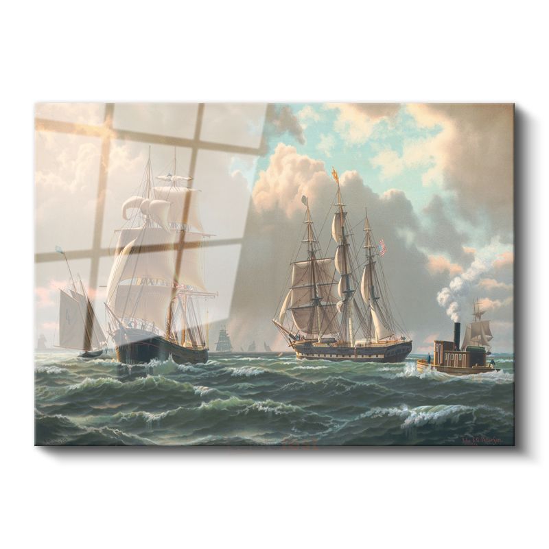 James Edward Buttersworth - Yelkenliler Denizde Cam Tablo
