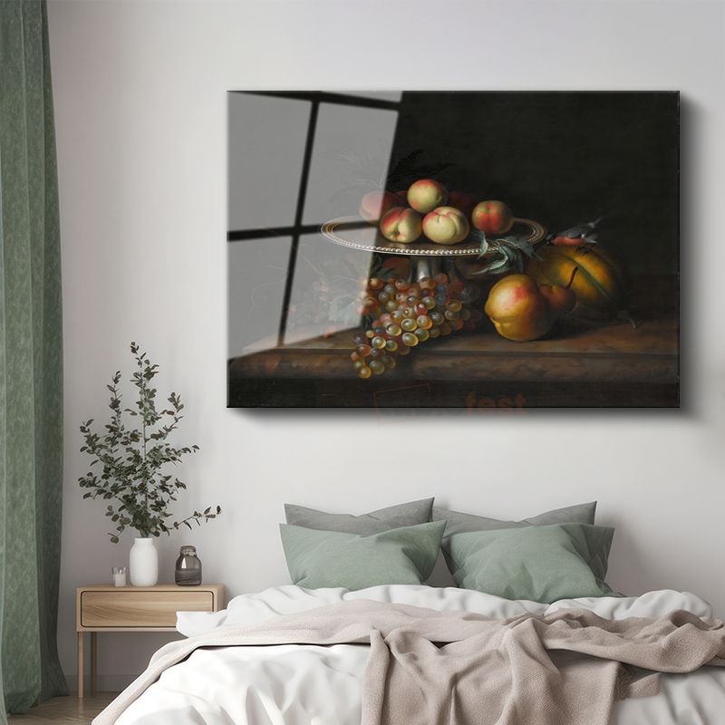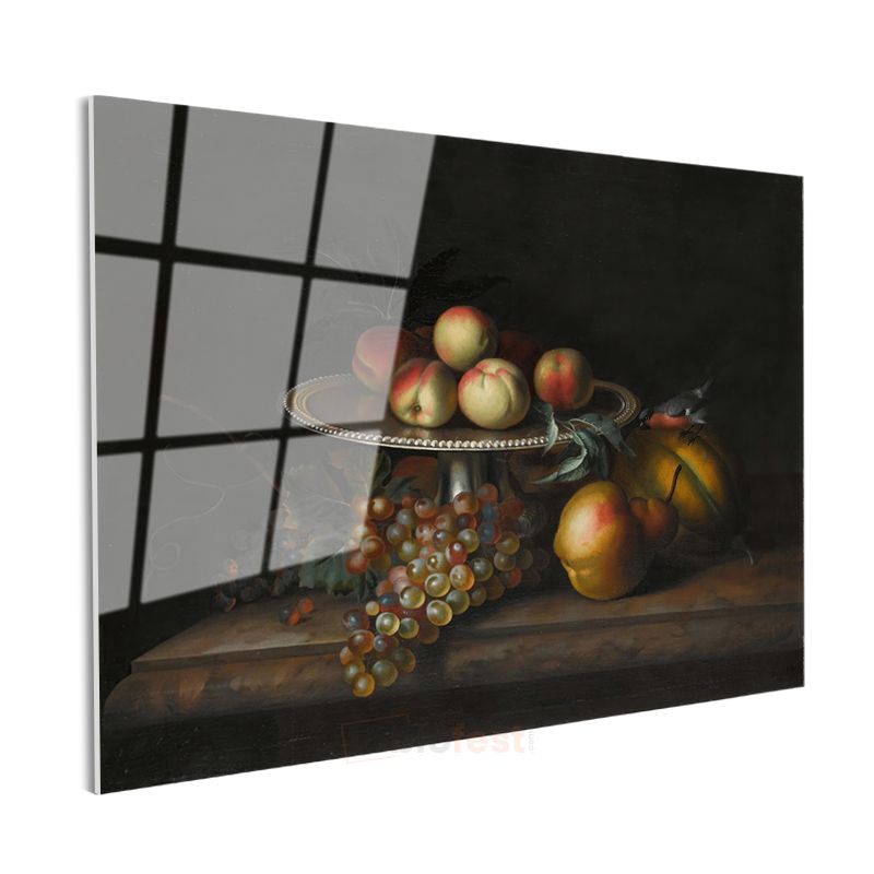 James Peale - Gümüş Tabakta Meyveler Cam Tablo