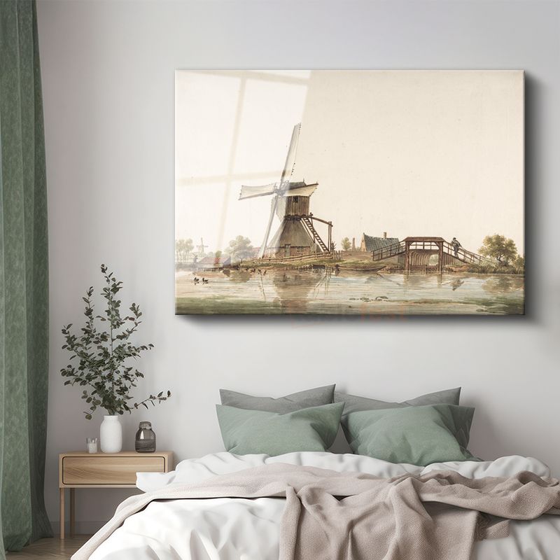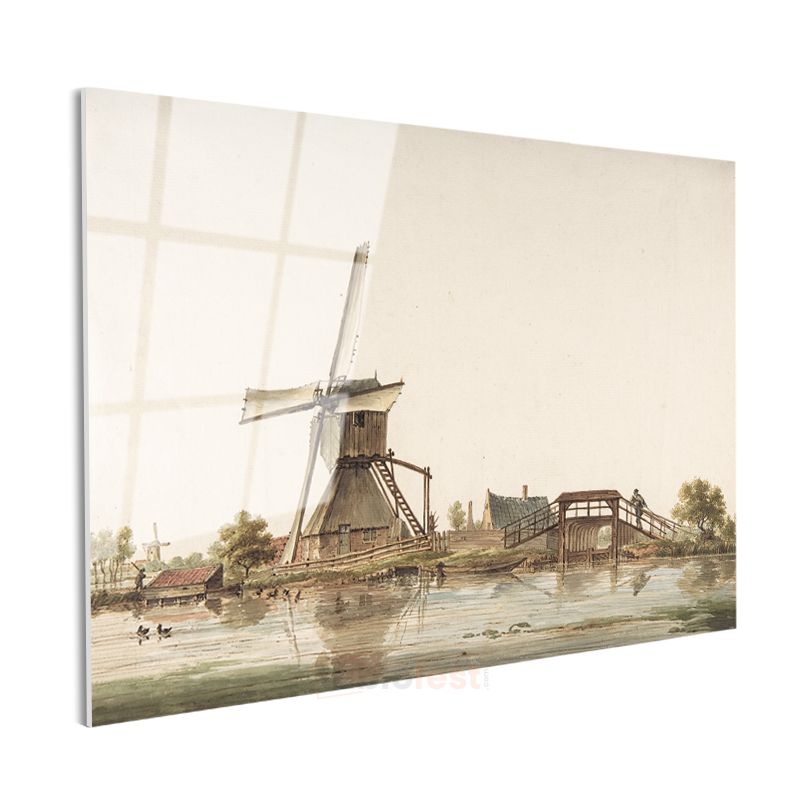 Jan van der Heyden - Hollanda Değirmeni ve Köprü Cam Tablo