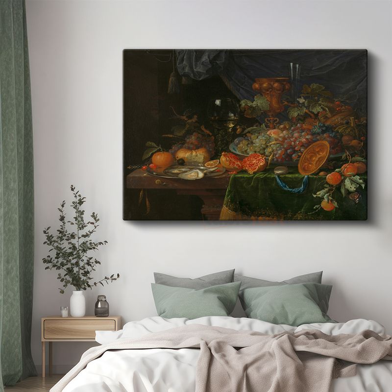 Jan van Huysum - Zengin Sofra Natürmortu Kanvas Tablo
