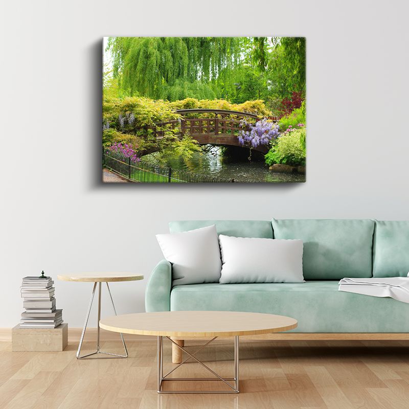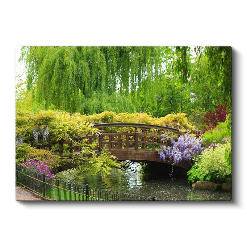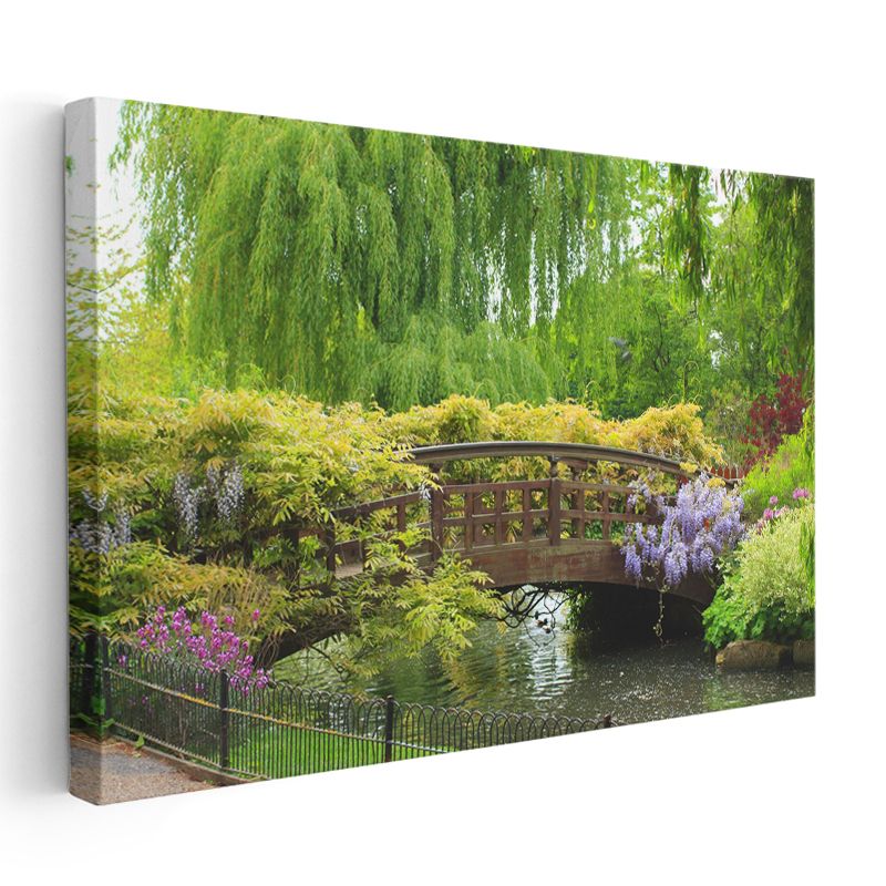 Japon Bahçesi - Söğüt Ağaçlı Köprü Manzarası Kanvas Tablo