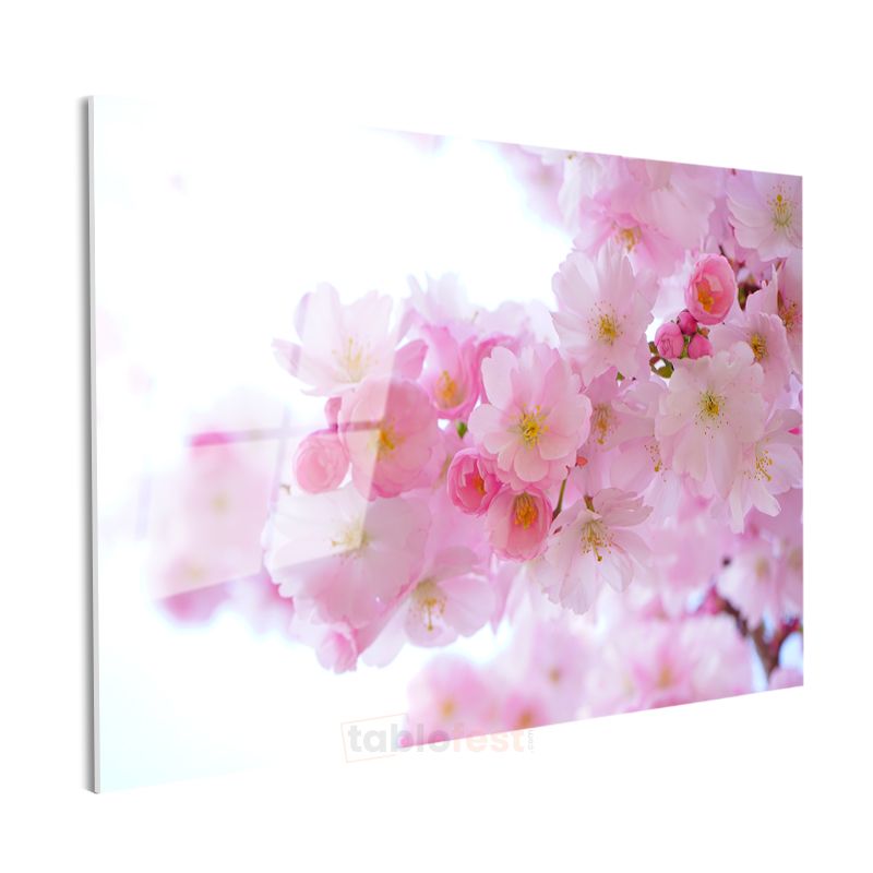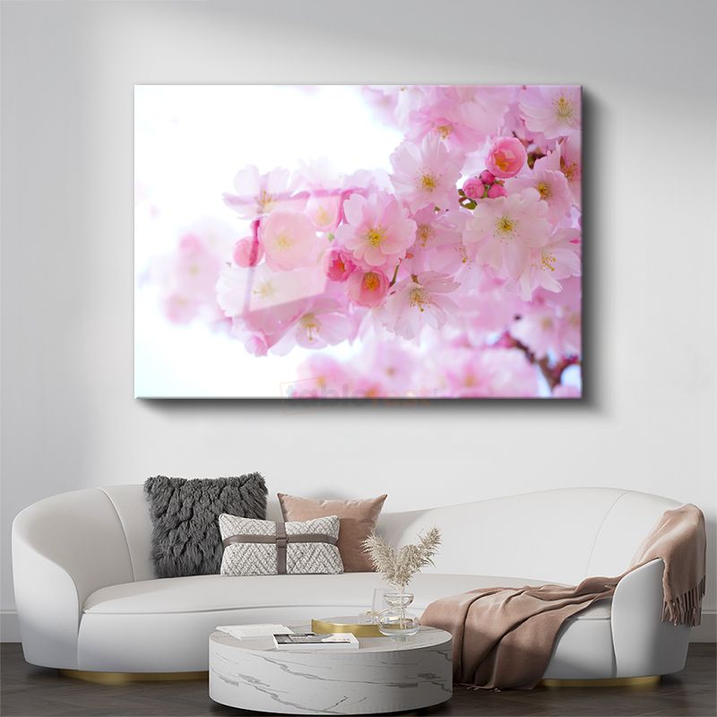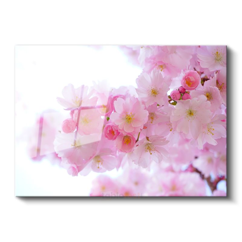 Japon Kiraz Çiçekleri - Işıltılı Pembe Bahar Dalları Cam Tablo