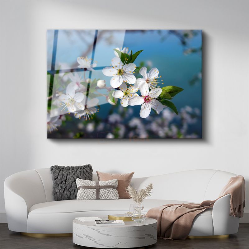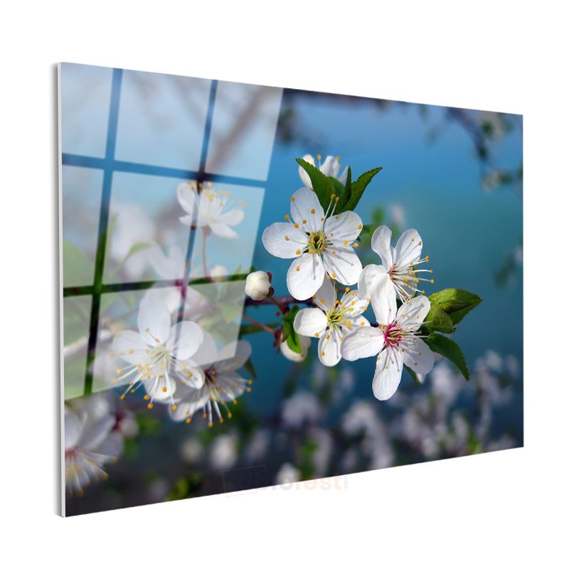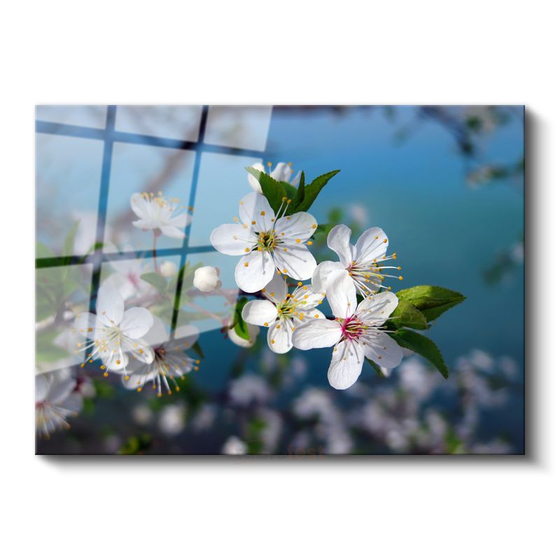 Japon Kiraz Çiçekleri - Yoğun Pembe Çiçekli Dal Cam Tablo